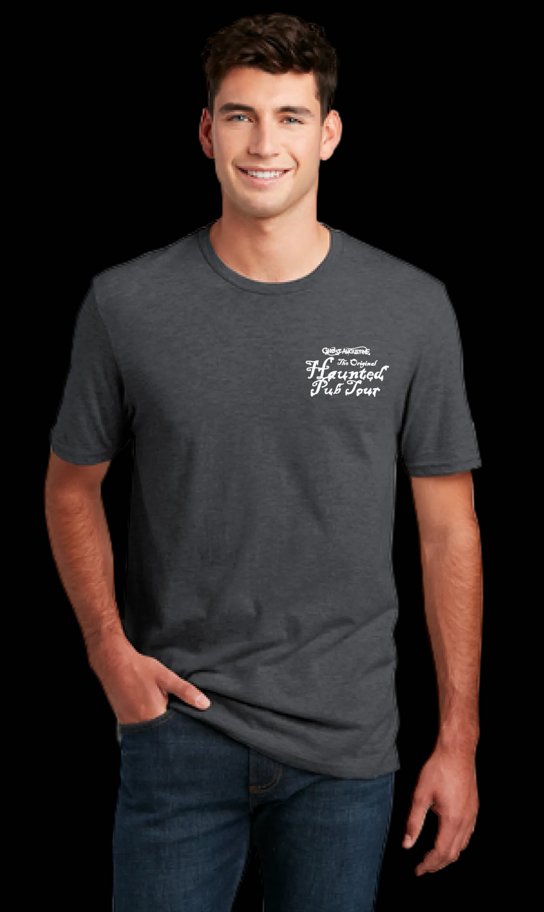 Designed by a local artist, this comfortable cotton T-shirt balances spooky and whimsical, while reminding you of your favorite tour experience in haunted St. Augustine, Florida! Sure to become the T-shirt you reach for again and again! Available in black or gray.