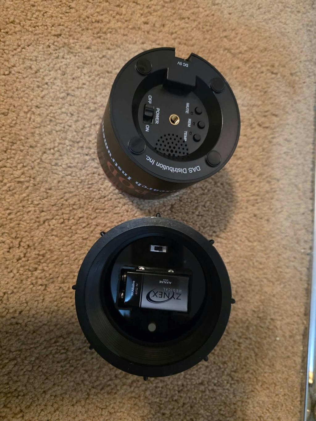 The REM-POD boasts 360-degree detection with its mini telescopic antenna that radiates its own magnetic field. The REM range is programmable for 5 different sensitivity levels. In the most updated version, you can manually set the baseline but it also has automatic setting of the baseline. Changes in the ambient temperature (ATDD) are alerted in increments of 5 degrees. An ascending tone and red LED light alerts an increase in temperature and a descending tone, and a blue LED light signifies a decrease in temperature.